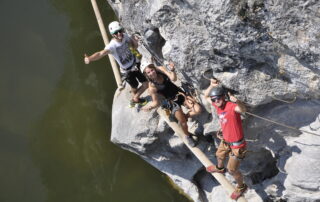 En plus des 13 parcours d’accrobranche de la formule rouge, vous aurez la possibilité de découvrir de nouvelles sensations de grimpe, à même le flanc de la falaise, lors de ce parcours unique de Via Ferrata en Ardèche. Accessible par une tyrolienne géante, et après une descente en rappel dans une grotte, vous longerez la falaise surplombant le Chassezac. La progression se fait à l’aide de barreaux, d’échelons et de ponts de singes.