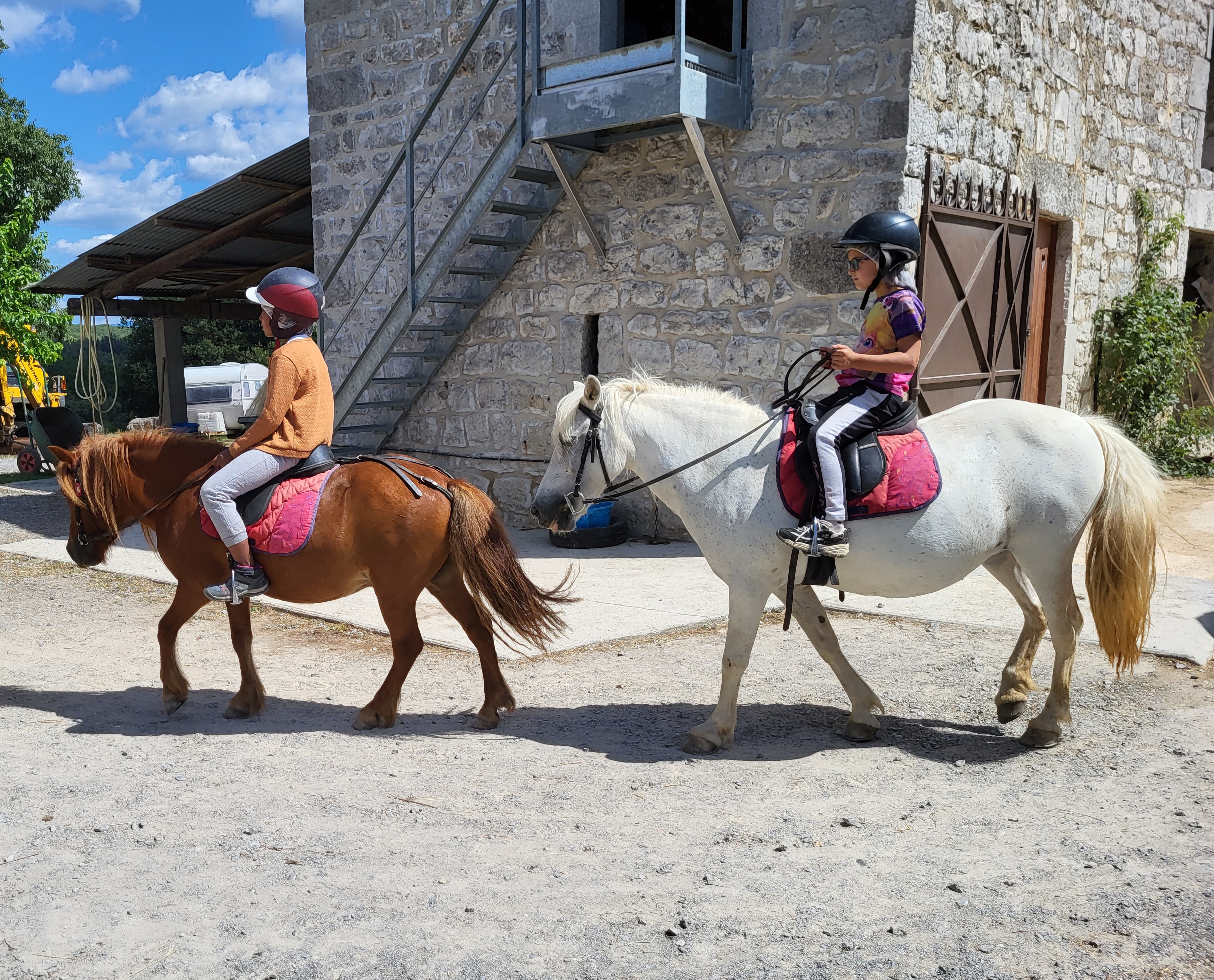 | Balade à poneys en main : 30 mn 12 € - 1h : 18 €. |