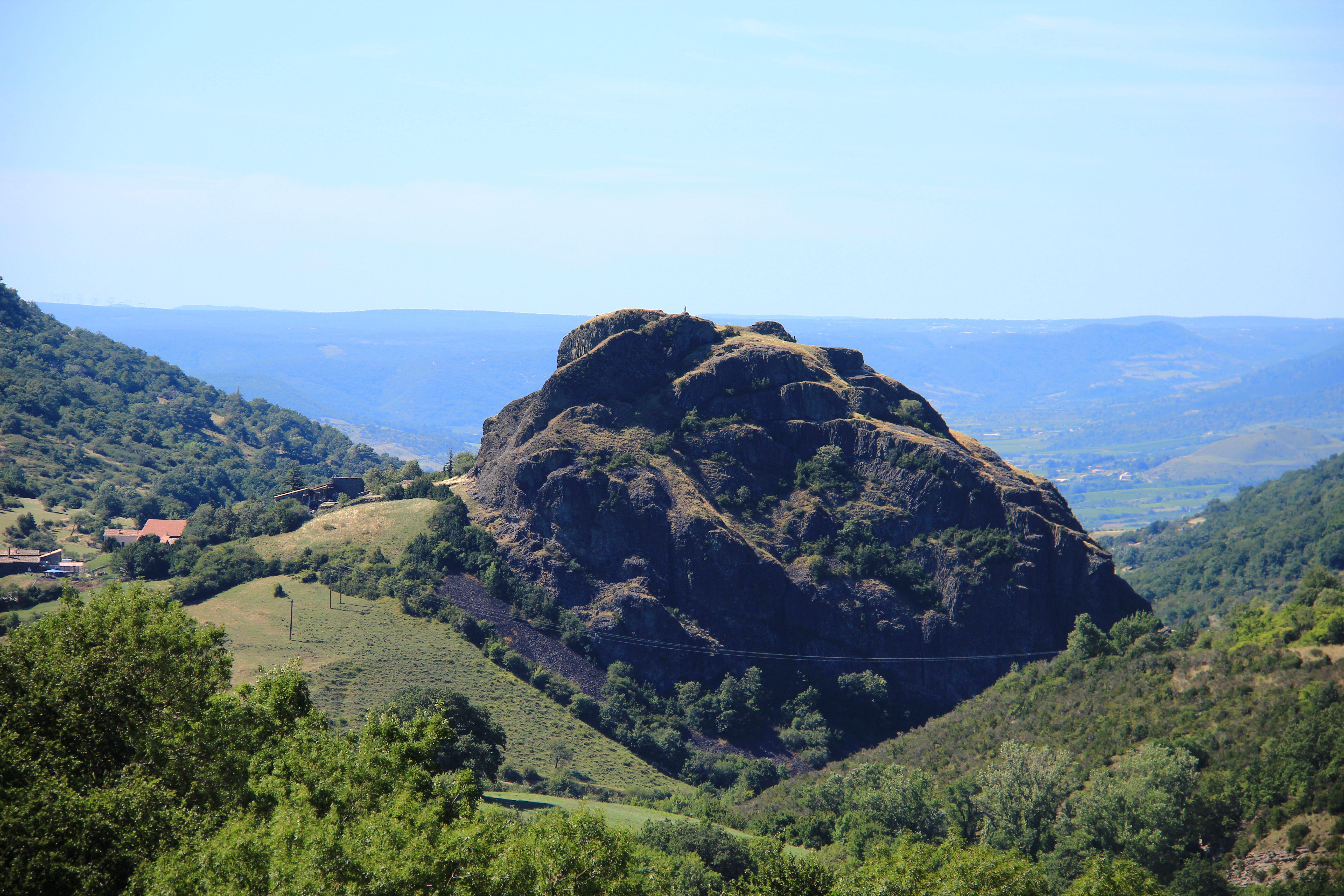 La statue d'une vierge a été mise à son sommet. A 130m au-dessus du village, le neck, bouchon de l’ancienne cheminée du volcan, nous permet de découvrir la géologie du site.