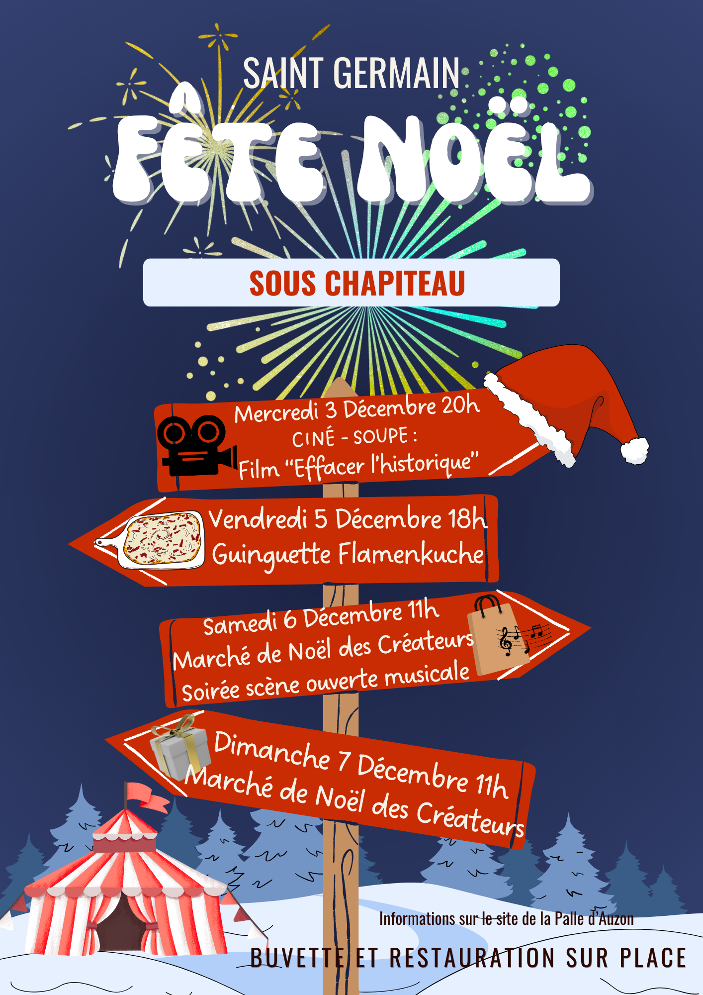 All of this will take place under a large heated tent in the Saint Germain town hall square, with refreshments and treats available.