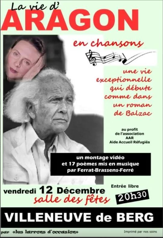 An extraordinary life that begins like a Balzac novel... A video montage and 17 poems set to music by Ferrat, Brassebs, and Ferré. Proceeds benefit the Aide Accueil Réfugiés association. By "Les Larrons d'occasion" (The Occasional Thieves)
