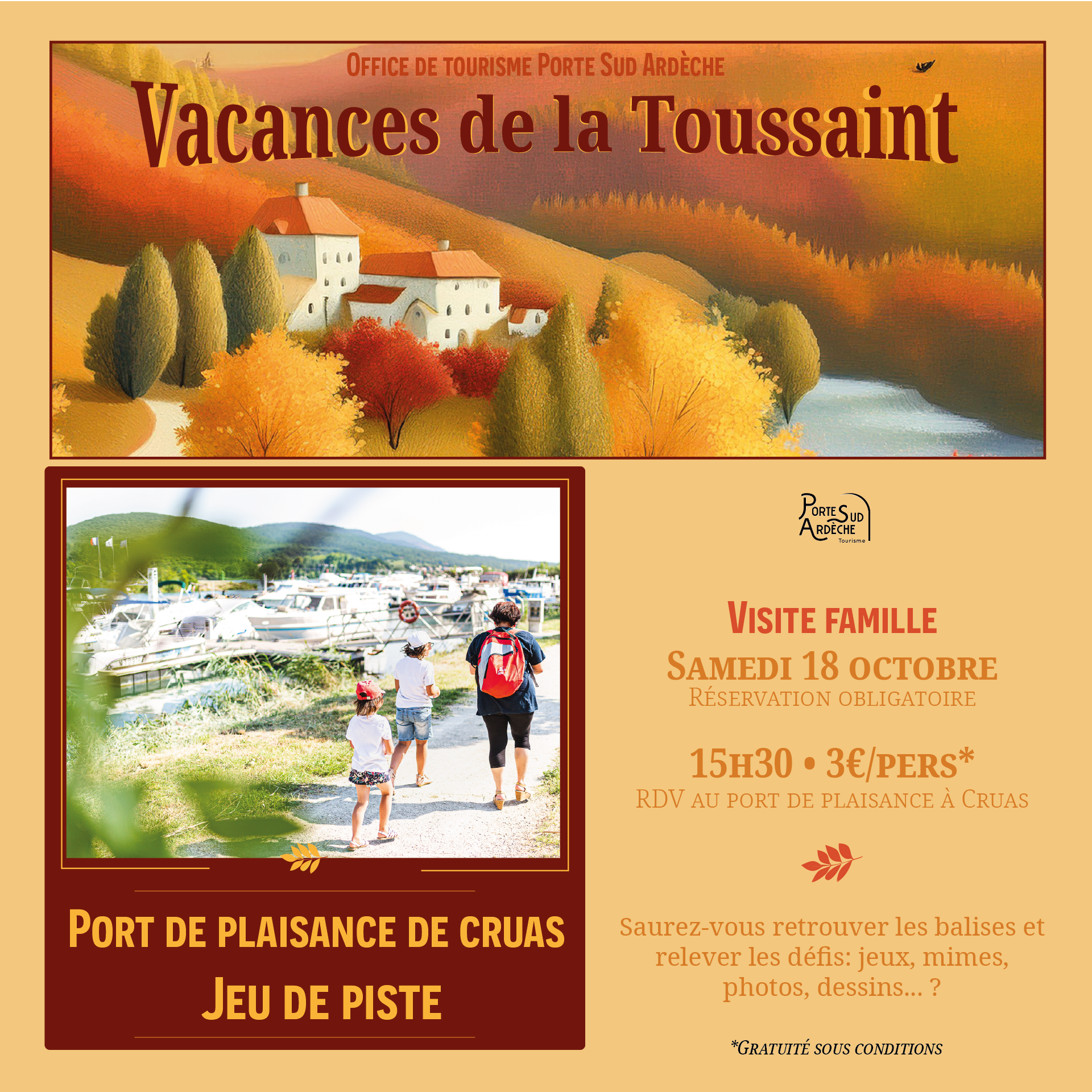 Will you be able to find the beacons and meet the challenges: games, mimes, photos, drawings...? Young and old alike will need to cooperate to complete the missions. Self-guided tour near Cruas marina.
