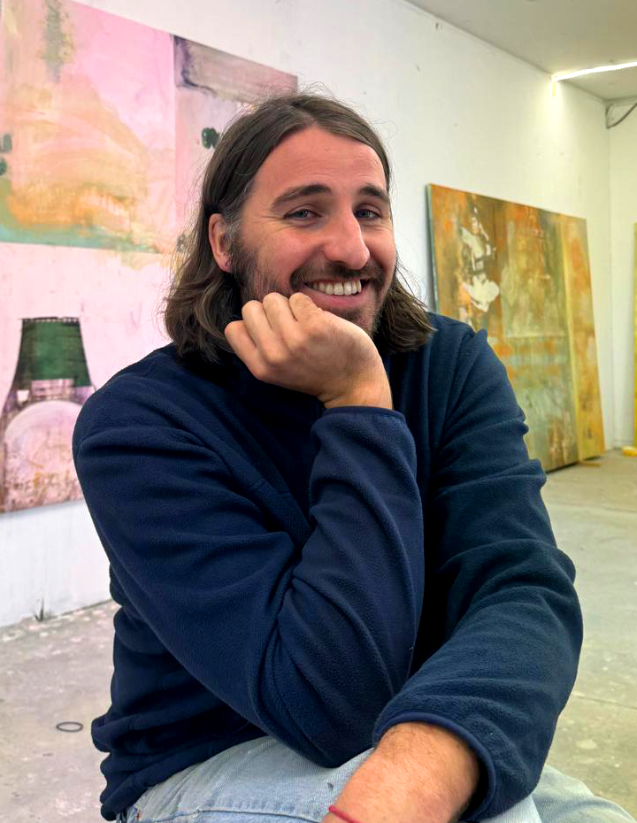 Alliant peinture et sérigraphie, ses toiles se construisent par superpositions, effacements et recouvrements. À la manière d’un palimpseste — ce manuscrit ancien où un texte effacé laisse place à une nouvelle inscription — chaque tableau conserve les traces visibles d’images antérieures. Ses oeuvres interrogent la persistance visuelle des images et les projections mentales qui façonnent notre mémoire et la perception de notre environnement. À travers cette démarche, Baptiste Caccia explore les mécanismes du regard : les images qui s’y déposent, s’y bousculent, y résistent. Il ne s’agit pas de raconter, mais de révéler les contaminations silencieuses entre les images, et ce qu’elles disent, malgré elles, du flot visuel saturé et discontinu de notre époque, où l’intime et le collectif se confondent dans un chaos dépourvu de hiérarchie.