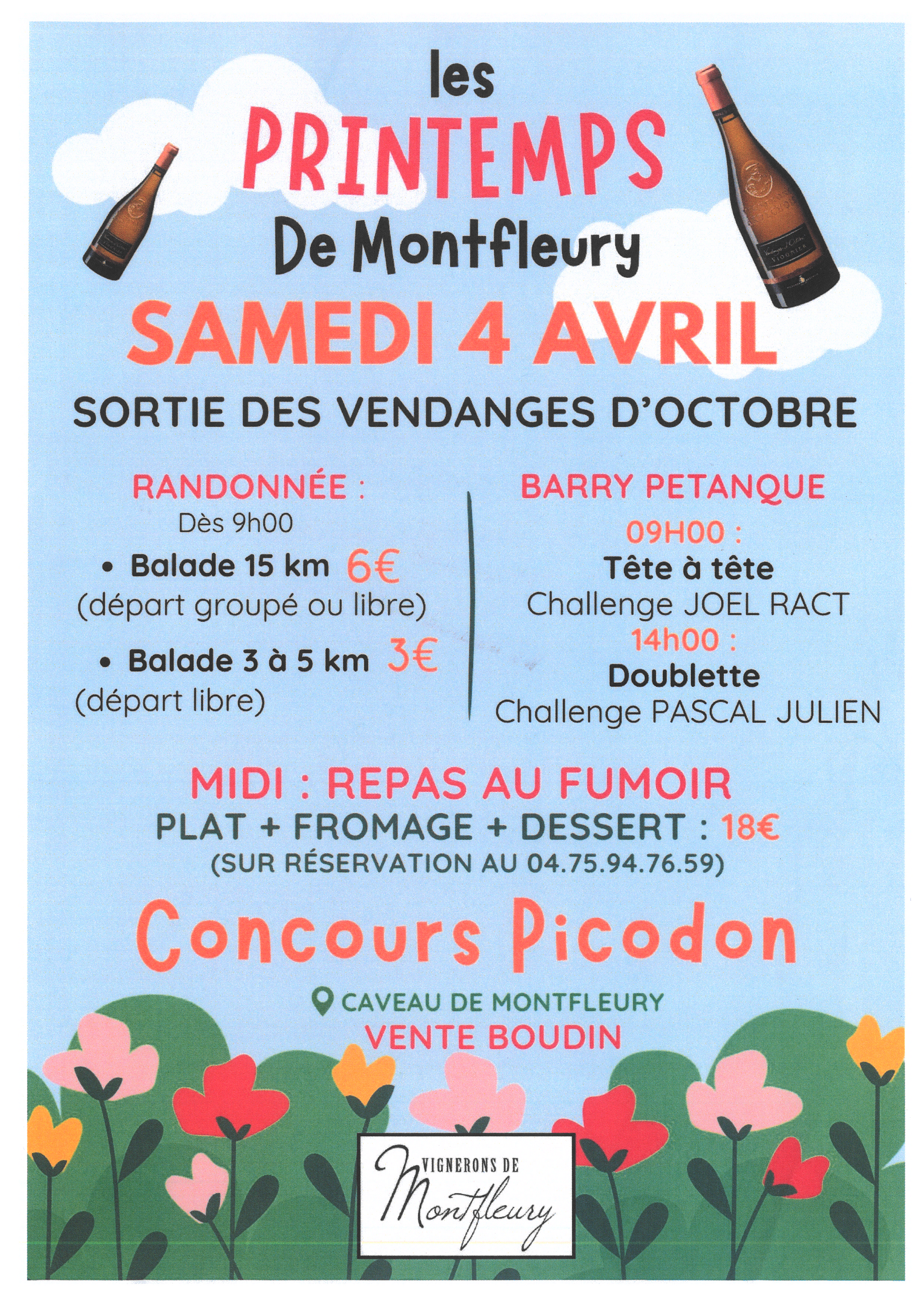 A l'occasion de la sortie des Vendanges d'Octobre, les vignerons de Montfleury vous proposent une journée festive. Au programme : randos (3/5km ou 15km), pétanque (tête à tête et doublette), repas au fumoir possible (sur réservation), concours de picodon