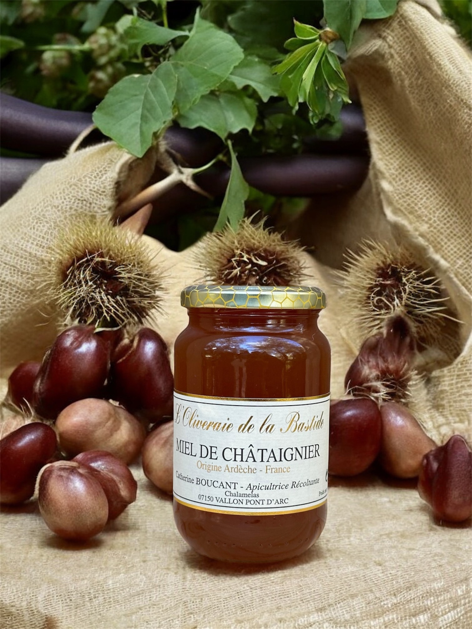 Nos abeilles produisent des miels de Garrigue, de Chataignier et de Lavande d’Ardèche.