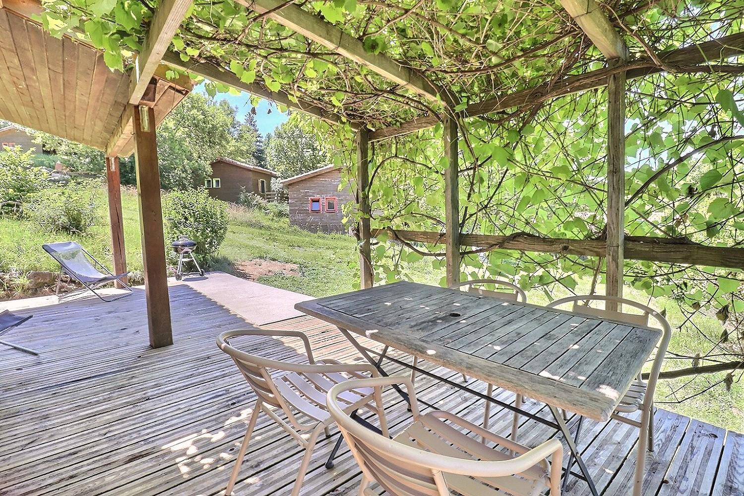 Coup de cœur assuré pour la terrasse privative du Chalet Jaune, sans vis-à-vis, ombragée par la vigne vierge et équipée avec tout le mobilier nécessaire, vous allez adorer y flâner tout en admirant la vue sur les reliefs, aux sons des cigales. Côté intérieur, on retrouve une pièce de vie avec coin cuisine équipée, table pour 4 et coin salon avec canapé clic clac (convertible en couchage pour 1 personne) et TV. La chambre est aménagée avec un lit en 140 et un lit 90 en hauteur. Pour terminer salle d’eau avec douche et WC. Un chalet agréable, qui associe confort et ambiance chaleureuse.