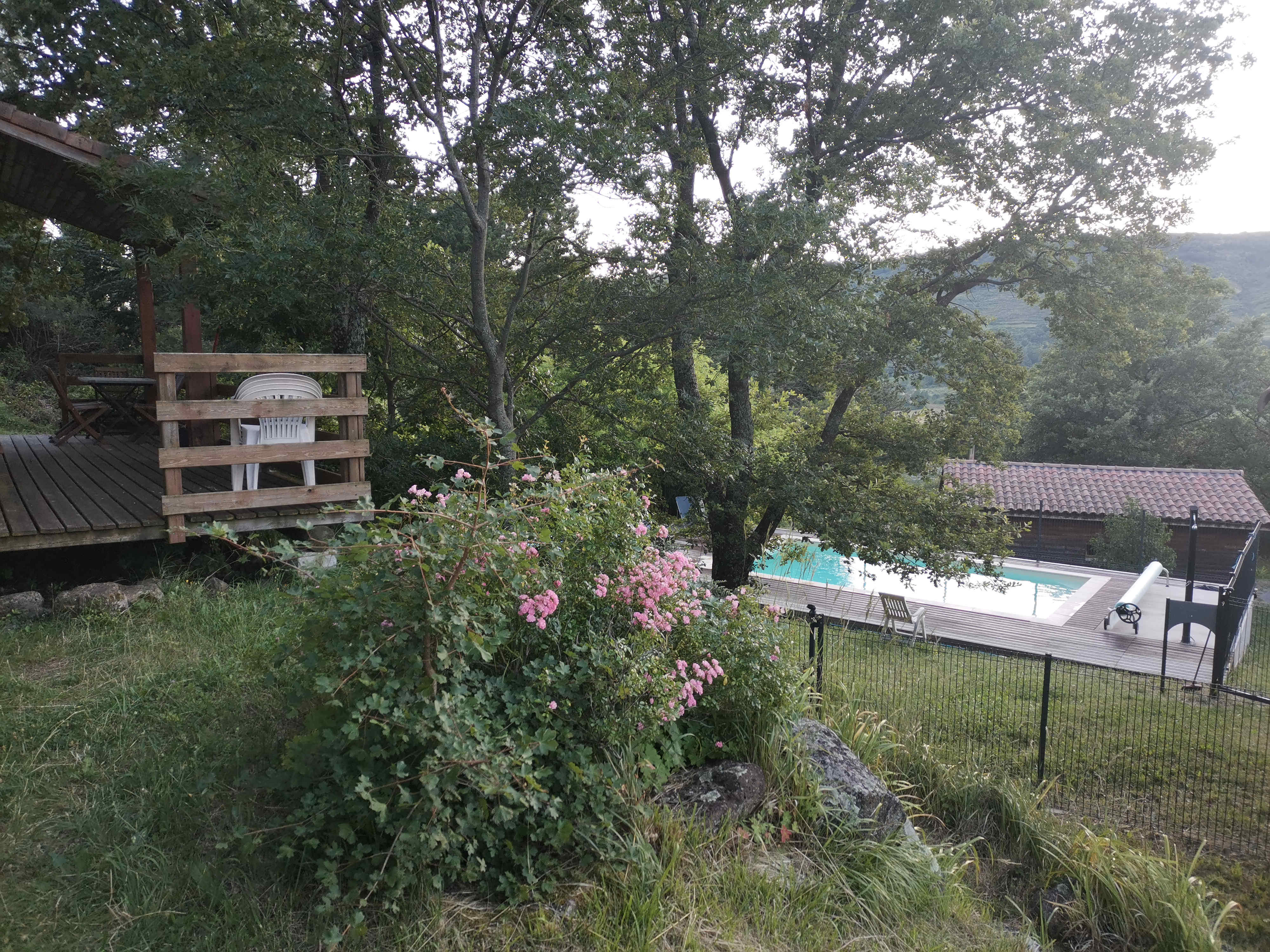 En pleine nature. Vue dégagée, sur un terrain de plus de 1 hectare, jeux pour enfants: petit et grand toboggan, 3 balançoires dont 1 avec siège bébé.