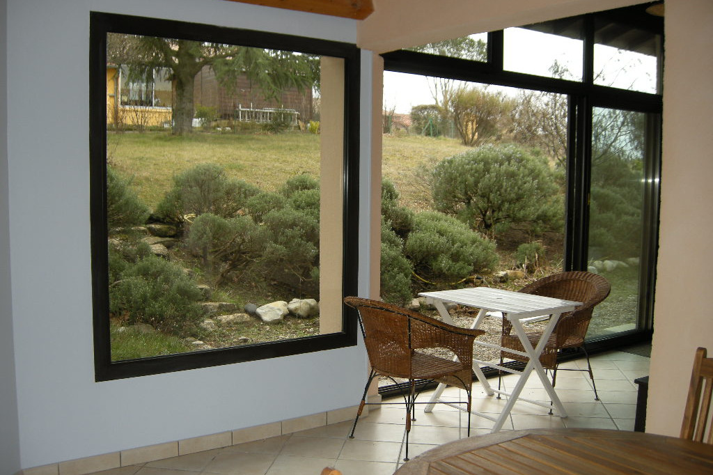 Maison indépendante de 77m2 avec vue sur le Coiron et le massif du Tanargue, sur un terrain de 700m2 arboré.