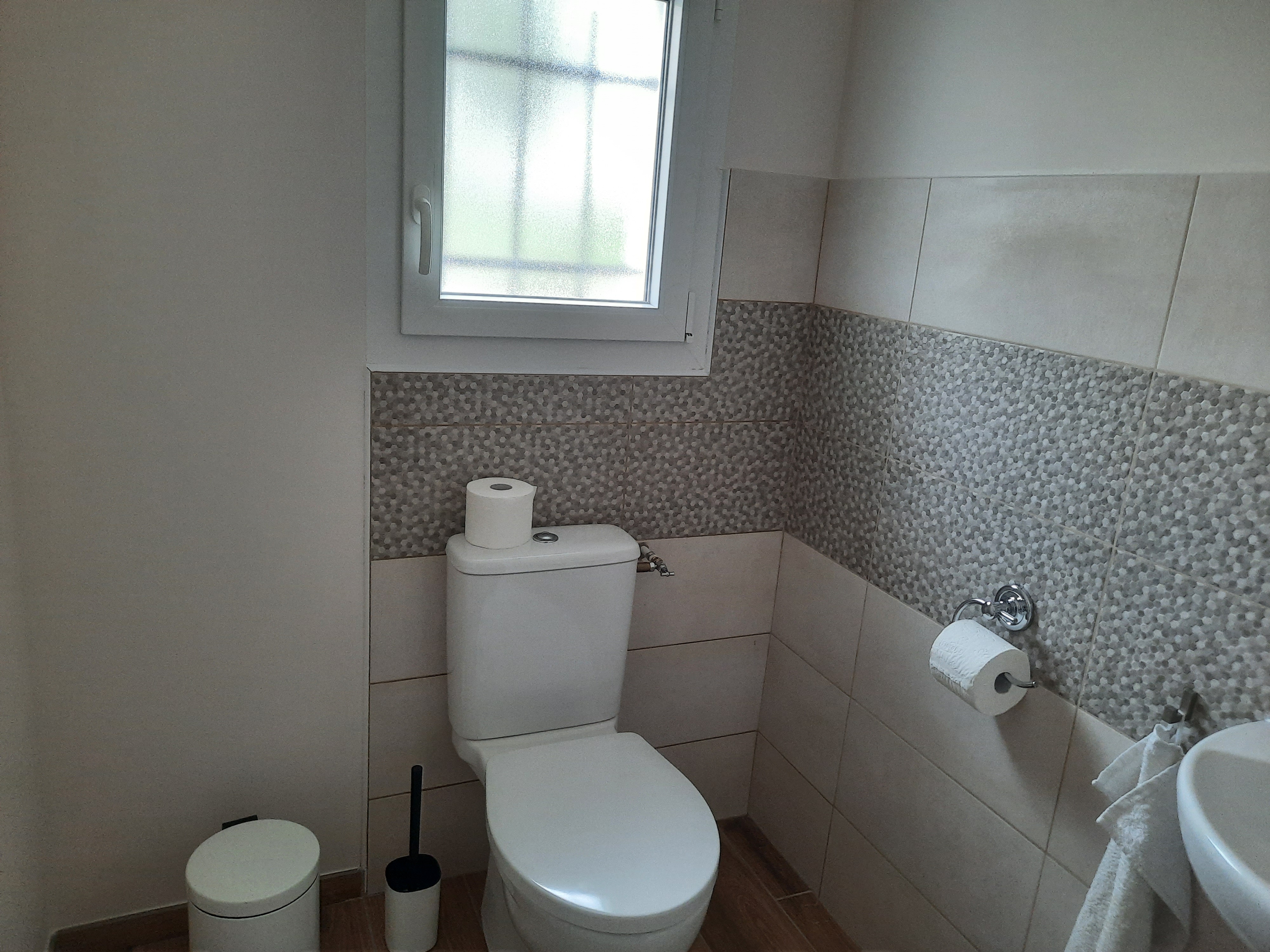 Une douche italienne équipe la salle d’eau, le tout complété par un WC séparé.