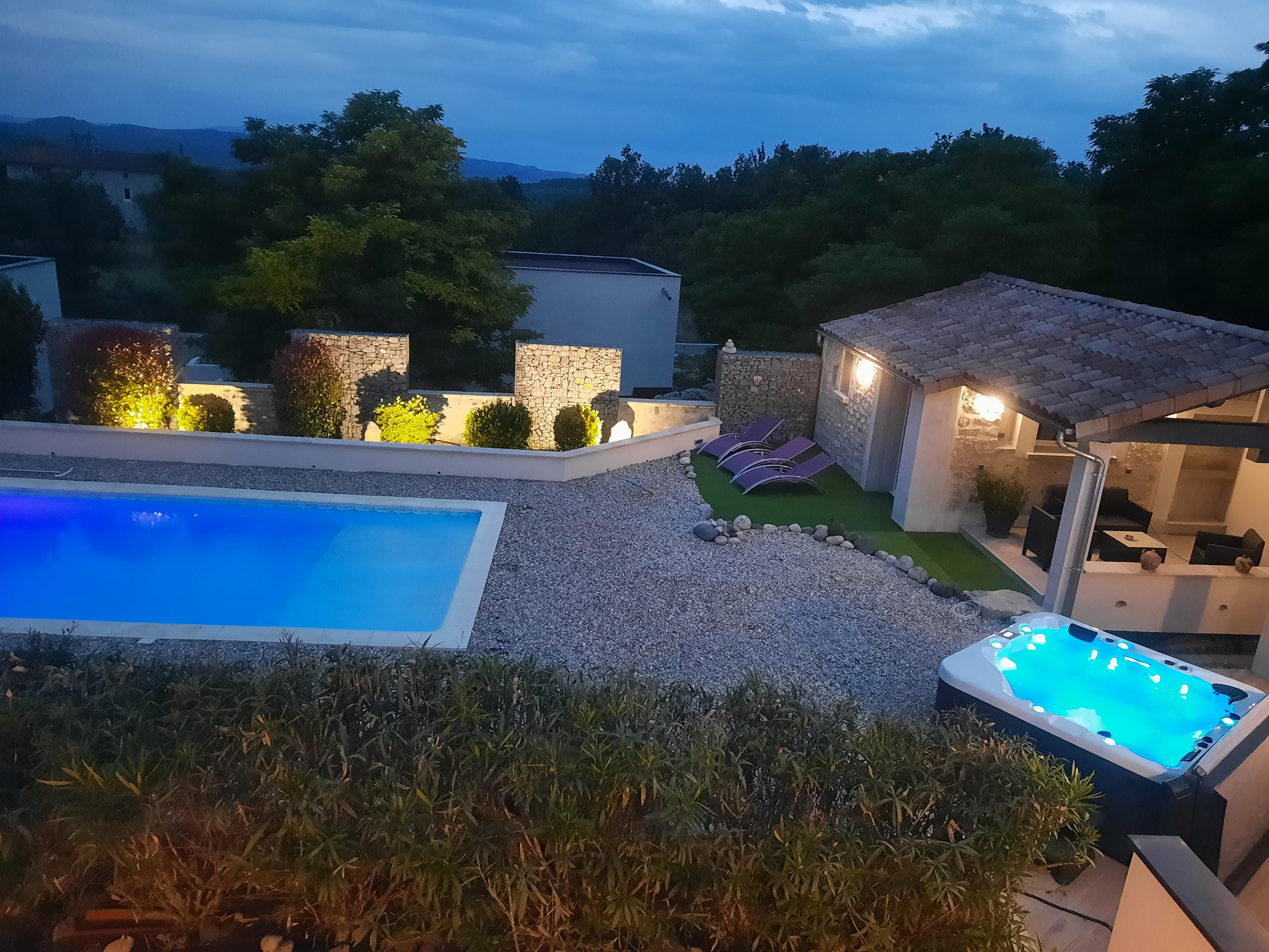 Un espace bien-être composé d’une piscine, d’un SPA et d’une salle de massage est commun et partagé en journée avec les 2 résidents d’un autre gîte. Ce lieu est privatisable de 20h à 22h sans supplément, sur simple demande.