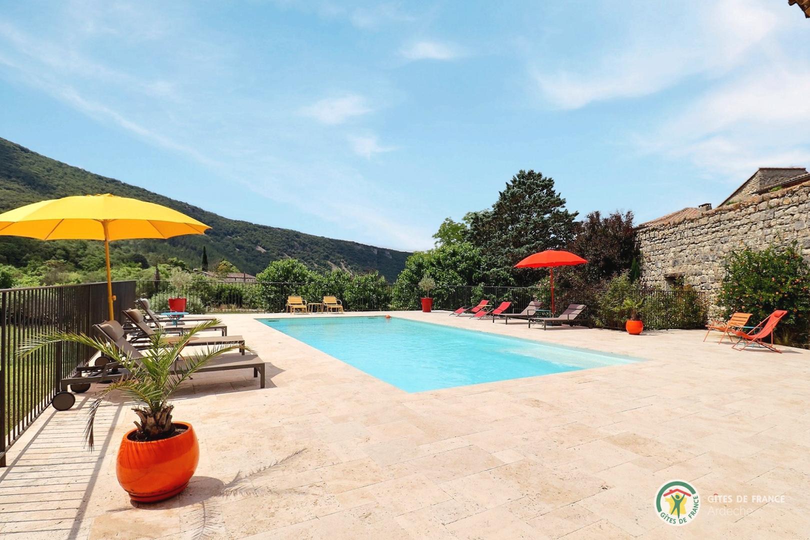 Grand gîte de caractère pour 6 pers situé dans une maison de village en pierres, dans le hameau des Salèlles, au coeur de la belle et sauvage Vallée de l'Ibie, aux portes de Vallon Pont d'Arc et de la Grotte Chauvet 2. Piscine à partager.
