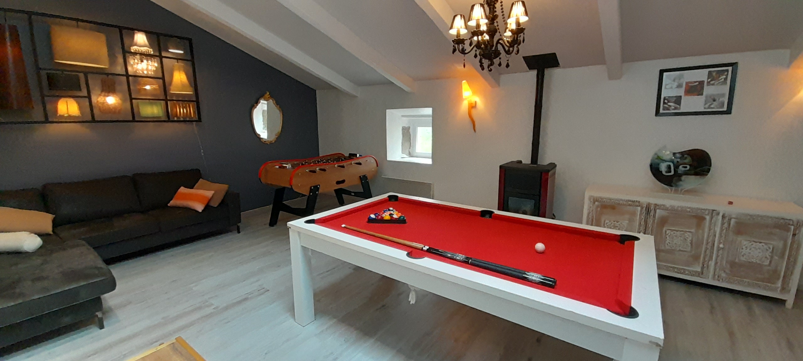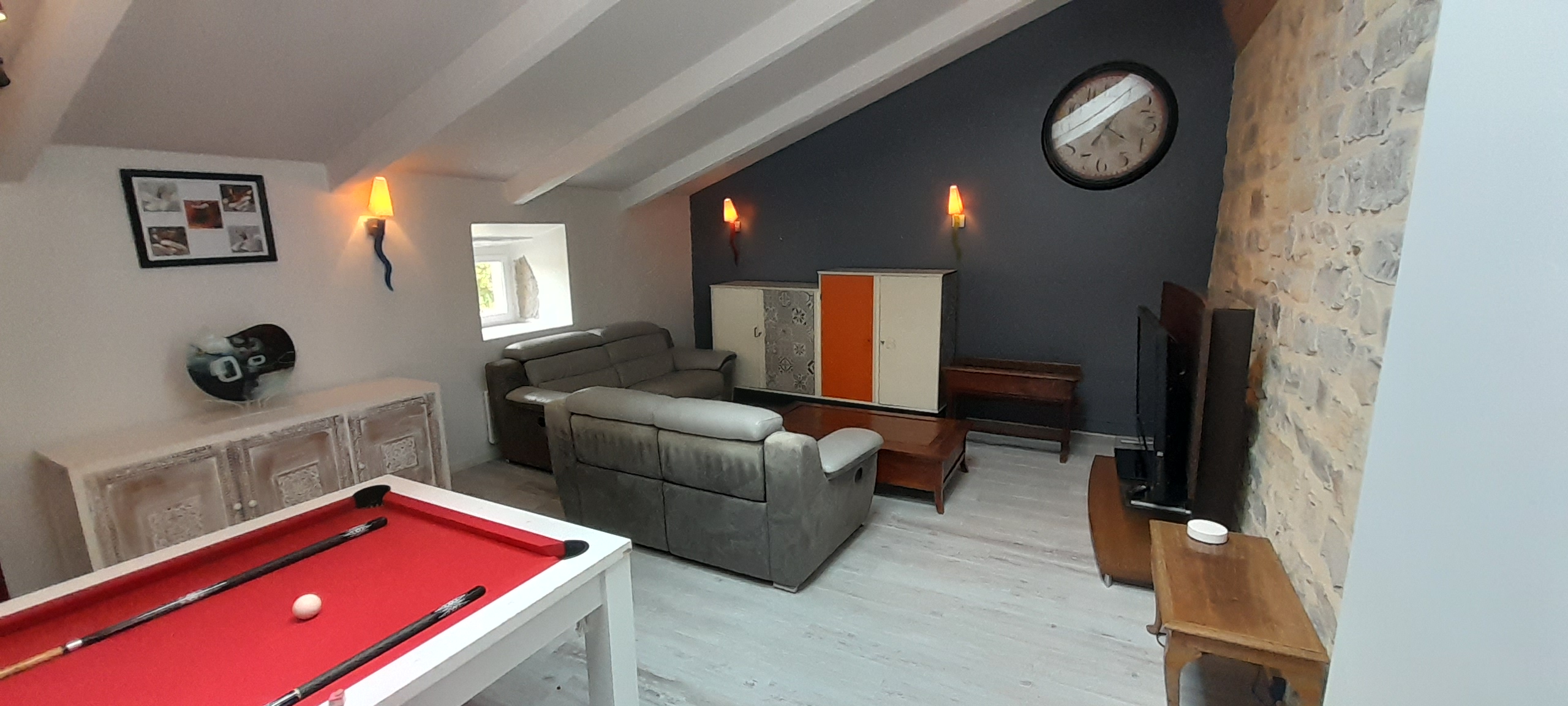 Le gîte en vielles pierres offre tout le confort nécessaire à un bon séjour avec une cuisine salle à manger au rez de chaussée climatisée, un immense séjour au premier étage (avec billard, babyfoot et jeux de société), quatre chambres spacieuses décorées avec soin et une literie de bonne qualité. Les deux salles de bain offrent une douche et une baignoire avec 2 WC indépendants.
