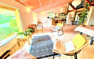 2 salons à chaque étage dont un avec cheminée et une grande salle de 110m2 pour repas et activités